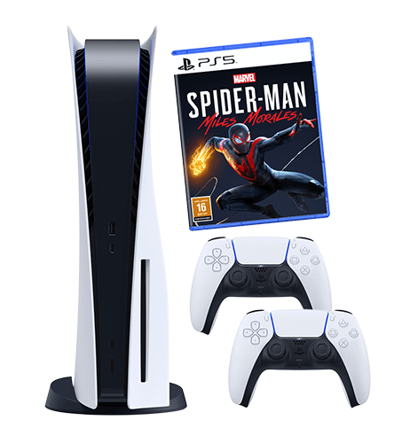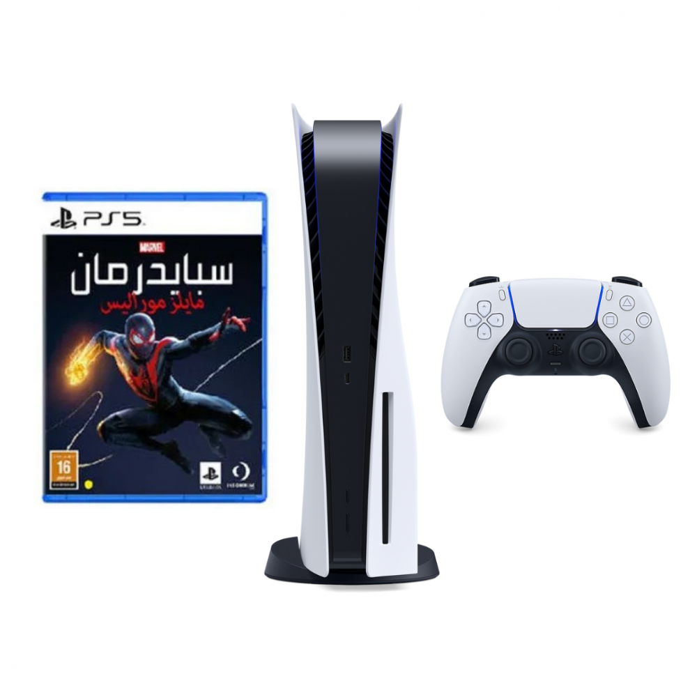 بلايستيشن 5 بلوراي + 2 يد تحكم + لعبة سبايدرمان